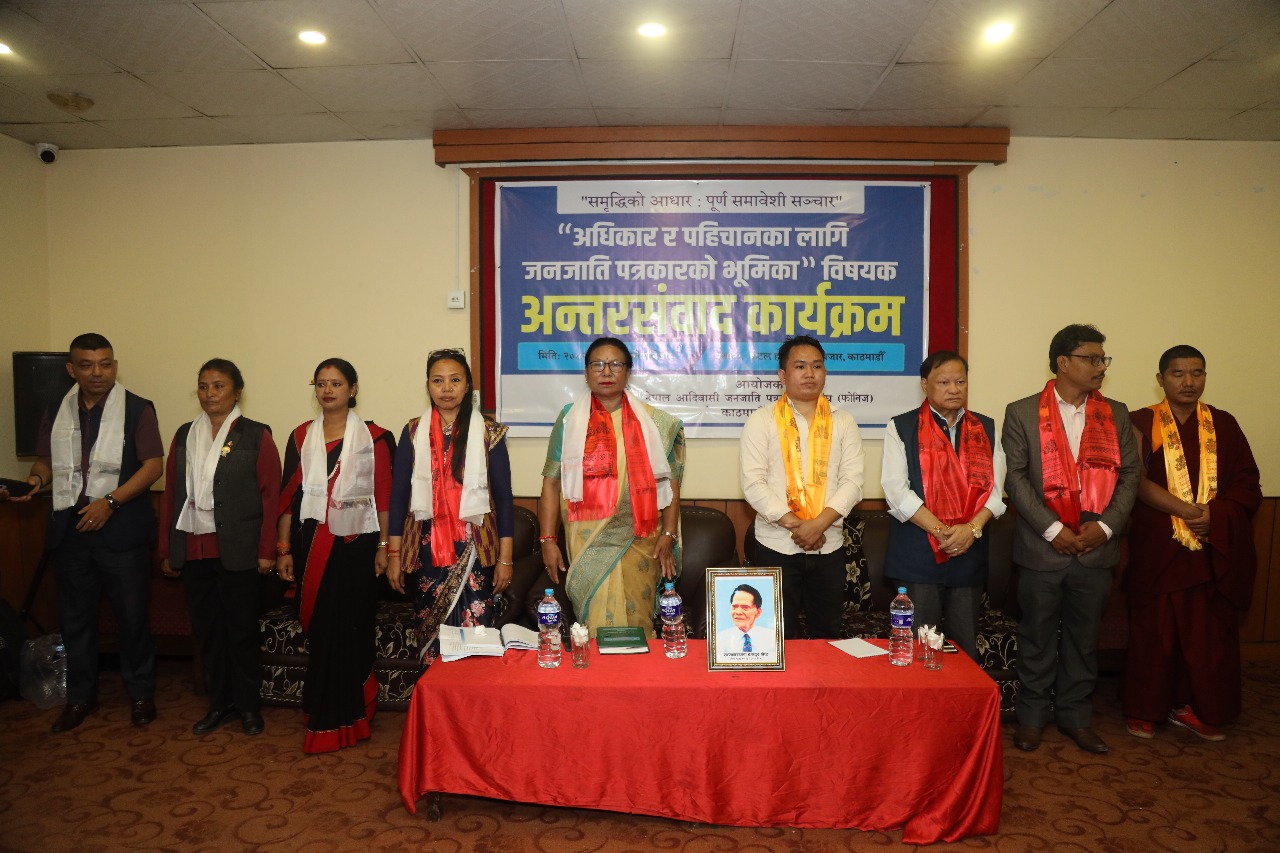 काठमाडौँ– नेपाल आदिवासी जनजाति पत्रकार महासंघ (फोनिज) काठमाडौँ समितिको आयोजनामा ‘अधिकार र पहिचानका लागि जनजाति पत्रकारको भूमिका’ विषयक अन्तरसंवाद कार्यक्रम सम्पन्न भएको छ।