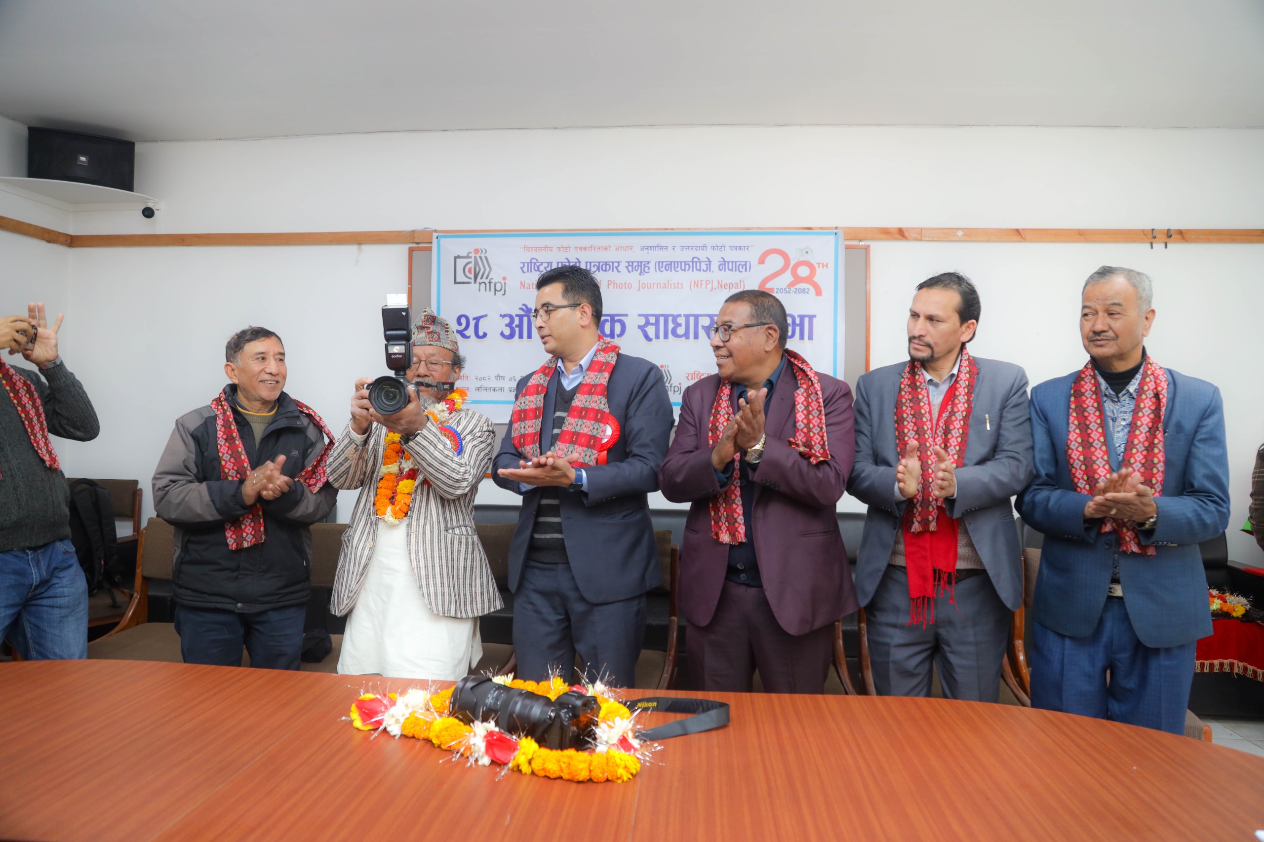 काठमाडौँ — राष्ट्रिय फोटो पत्रकार समूह नेपाल (एनएफपिजे) ले आफ्नो २८ औँ वार्षिक साधारण सभा आइतबार सम्पन्न गरेको छ। ललितकला प्रज्ञा–प्रतिष्ठान, नक्सालस्थित सभा हलमा आयोजित साधारण सभा प्रतिष्ठानका कुलपति नारदमणि हार्तम्छालीको प्रमुख आतिथ्यमा सम्पन्न भएको हो।