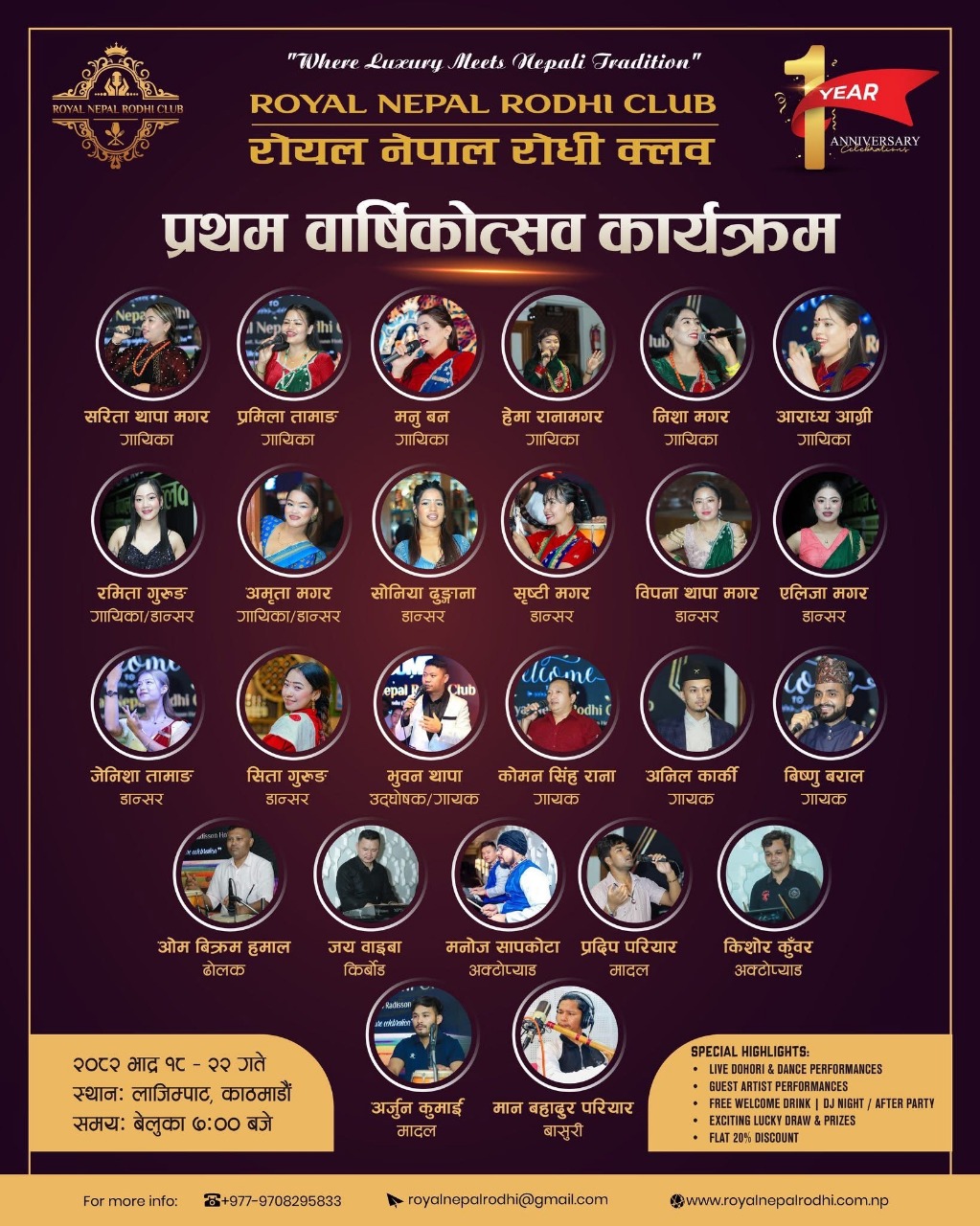 रोयल नेपाल रोधी क्लबको प्रथम वार्षिकोत्सव : नेपाली कला, संस्कृति र विलासिताको संगम