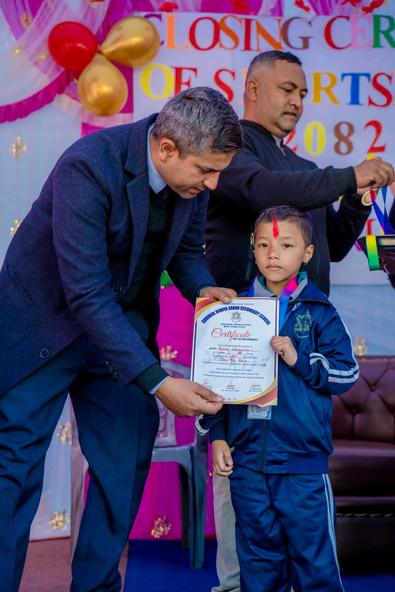 पुरस्कार वितरण समारोहमा बोल्दै विद्यालय व्यवस्थापन समितिका अध्यक्ष रवि कार्कीले विद्यालयस्तरमै खेल प्रतिभाको पहिचान सम्भव हुने र खेलकुदले विद्यार्थीको शारीरिक, मानसिक तथा सामाजिक विकासमा महत्वपूर्ण योगदान पु¥याउने भएकाले खेलकुद कार्यक्रम प्रभावकारी हुने बताउनुभयो । समारोहमा बोल्दै विद्यालयका प्राचार्य भुवन सुवेदीले खेलकुद शिक्षाको अभिन्न अंग भएको उल्लेख गर्नुभयो । खेलमैदानमा सिकिने समयपालन, नियमपालन र हार–जितलाई स्वीकार गर्ने संस्कारले विद्यार्थीको चरित्र निर्माणमा सकारात्मक प्रभाव पार्ने र खेलकुदमार्फत अनुशासन, आत्मविश्वास र नेतृत्व क्षमताको विकास हुने विद्यालयका प्राचार्यको भनाई थियो । ।