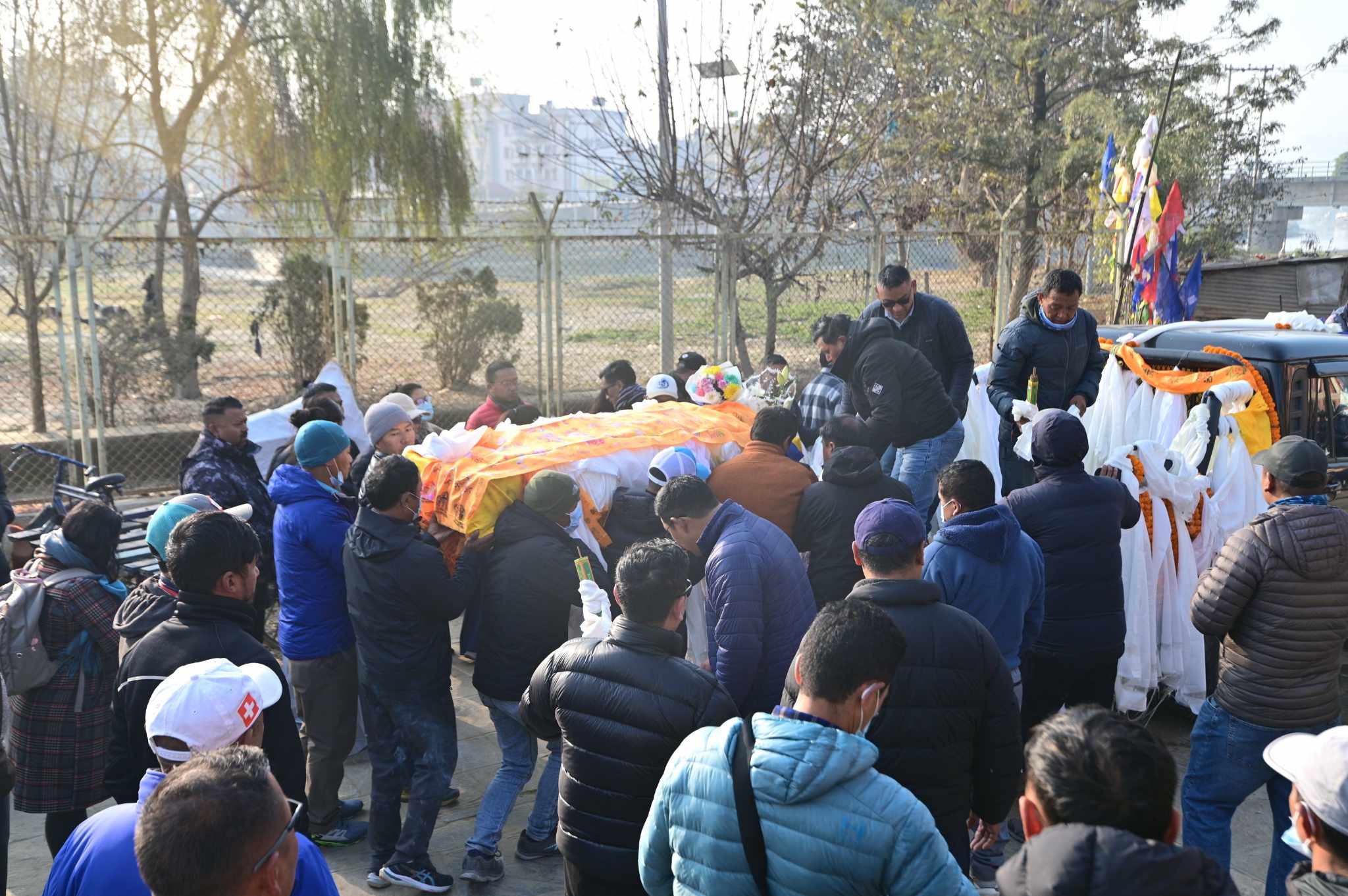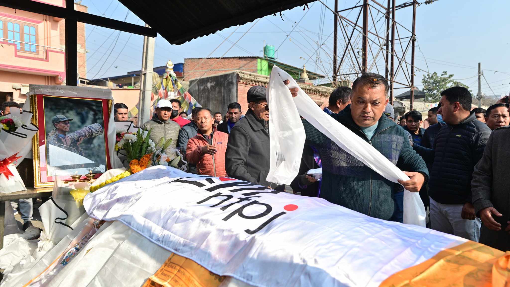 काठमाडौँ | राष्ट्रिय फोटो पत्रकार समूह (एनएफपिजे नेपाल)ले आजीवन सदस्य तथा वाइल्डलाइफ फोटोग्राफर चुङ्बा शेर्पालाई अन्तिम श्रद्धाञ्जली दिएको छ। दाहसंस्कार गर्नुअघि उनको पार्थिव शरीरमा एनएफपिजेका अध्यक्ष प्रदीपराज वन्तसहित संस्थाका पदाधिकारी, सदस्यहरूले एनएफपिजेको झण्डा ओडाएर सम्मानसहित अन्तिम बिदाइ गरेका हुन्।